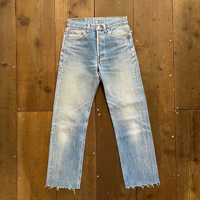 ⚫︎ブランド : levi's ⚫︎年代:1991 ⚫︎素材 :デニム ⚫︎カラー:ブルー ⚫︎サイズ:W28 L36表記 (実寸 W28 L29〜30) ウエスト34㎝ 股上25.5㎝ 股下70㎝ 裾幅18.5㎝ ※平置き実寸表記 ※シングルにて裾上げ有り ※ダメージがございます ※返品不可となります